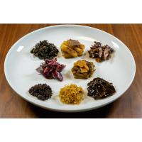 木の芽煮80g、味しめじ・深山しぐれ・葉とうがらし・山椒こぶ各40g、しば漬・花ごぼう各50g、山椒じゃこ20g