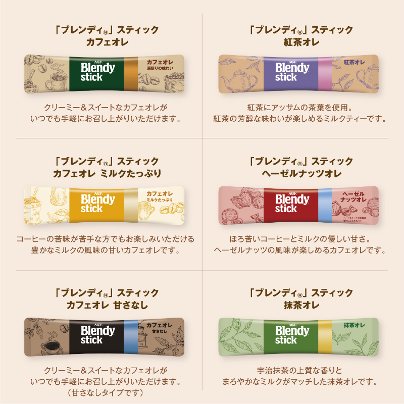 カフェオレ3種に加え、紅茶オレ、ヘーゼルナッツオレ、抹茶オレの6種類の味わいが楽しめます。お湯を注ぐだけで簡単に作れるので、どなたにも喜ばれるスティックギフトです。ギフト限定商品なのでコーヒー好きの方へのプレゼントとしてはもちろん、ご自宅用として自分へのご褒美としてもおすすめです。