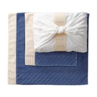 風呂敷包み:綿100%、バスタオル×2(ベージュ・ネイビー)、フェイスタオル×2(ベージュ・ネイビー)、今治タオルブランド認定番号:第2025-090号 日本製
