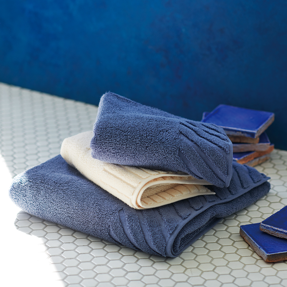 風呂敷包み:綿100%、バスタオル(ネイビー)、フェイスタオル×2(ベージュ・ネイビー)、今治タオルブランド認定番号:第2025-090号 日本製