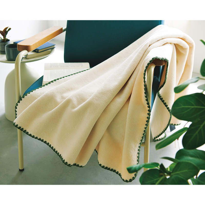 綿花栽培で有数の生産量を誇る、ウズベキスタン共和国。中でもサマルカンド地方・ブハラ地方・フェルガナ地方は寒暖差が大きく、綿花栽培に適しています。約30mmの長い繊維となった良質な完熟綿を選りすぐり糸に紡いだ「サマルカンダリア(R)」は、光沢・艶があるソフトな風合いが特徴です。また、〈くらしすと〉では、日本国内の希少な職人技術による、ものづくりにこだわっており、織物産地である「紀州高野口」で丁寧に織りあげたブランケットは肌になめらかな仕上がりです。パイル糸(毛羽部分)に「サマルカンダリア(R)」オーガニックコットンを染色せずに生成りのまま使用し、素材本来の風合いも大切にしました。
