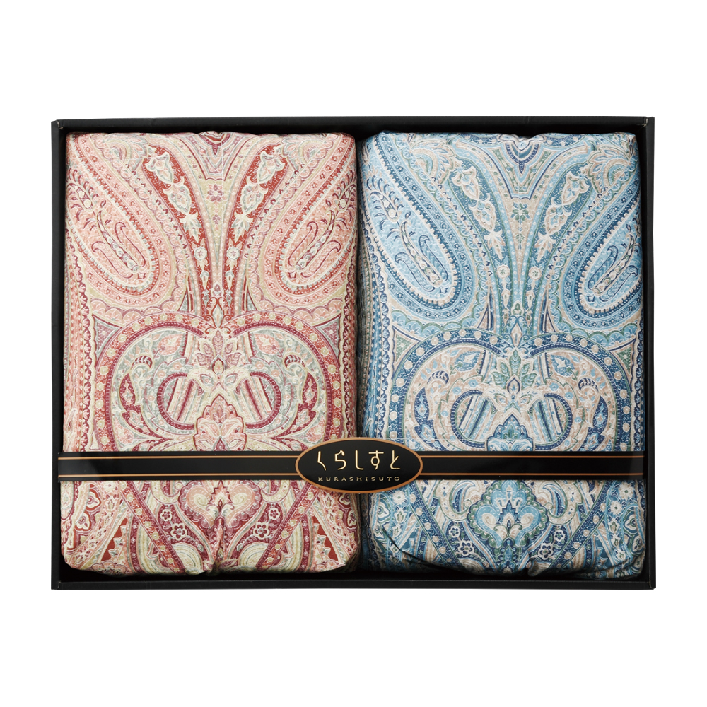 側地:ポリエステル85%・綿15%、中わた:ダウン85%・フェザー15%、0.4kg入、150×210cm×2 日本製