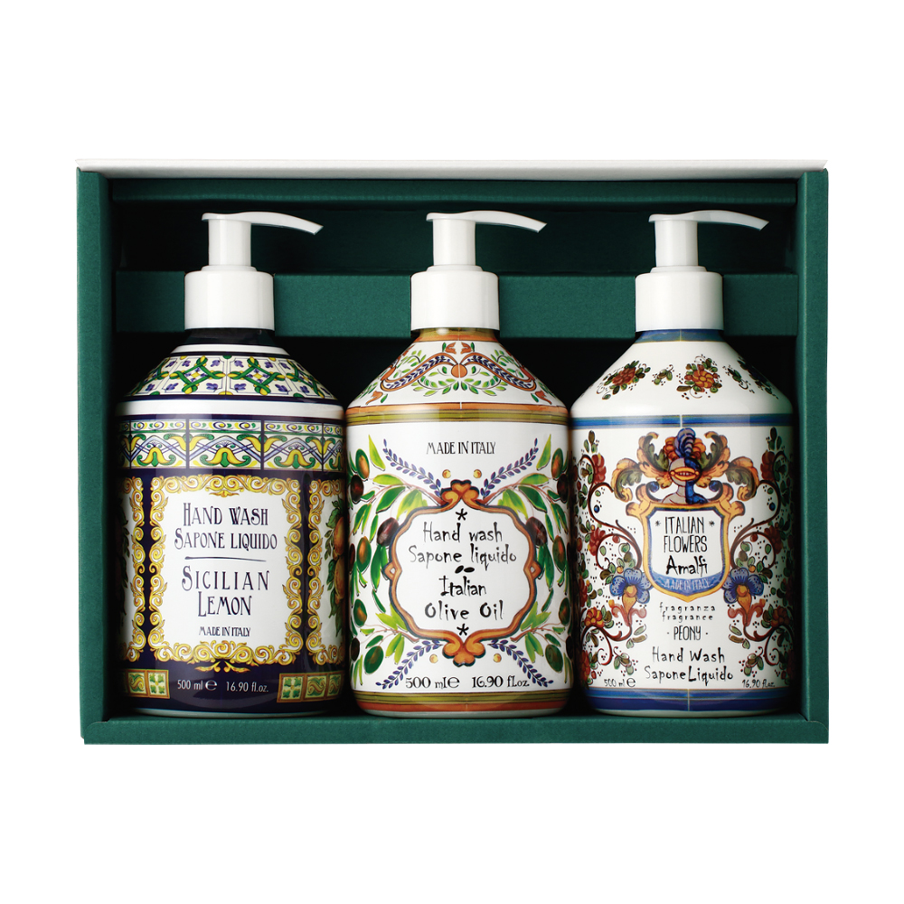 500ml×3(シチリアンレモン・イタリアンオリーブオイル・アマルフィピオニー)、プラボトル入 イタリア製
