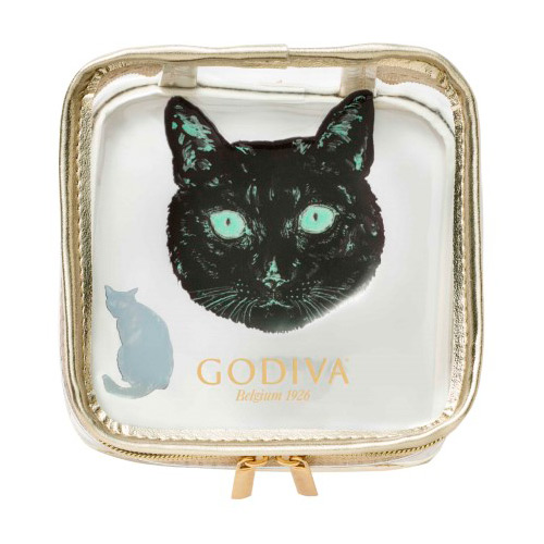 ゴディバのチョコレートのおいしさをシンプルに味わっていただけるG キューブ チョコレートのミルク、ダーク、ホワイトプラリネ、ミルク ブロンドソルテッドキャラメルの4種類を、黒ネコを描いたポーチに詰め合わせました。コンパクトながらしっかり容量のキュートな黒ネコポーチとG キューブ チョコレートとのセットは、ハロウィンシーズンのギフト、ネコ好きな方への贈りもの、そしてご自分へのごほうびにどうぞ。