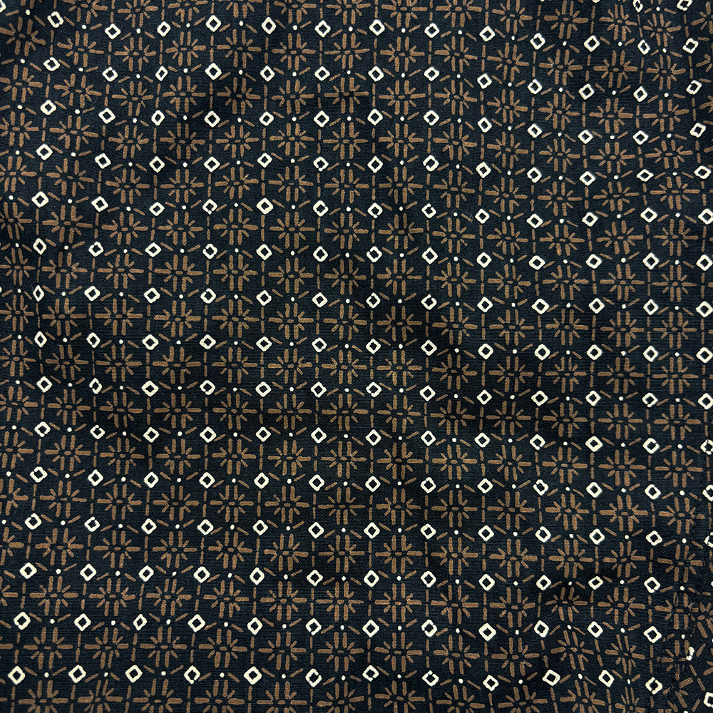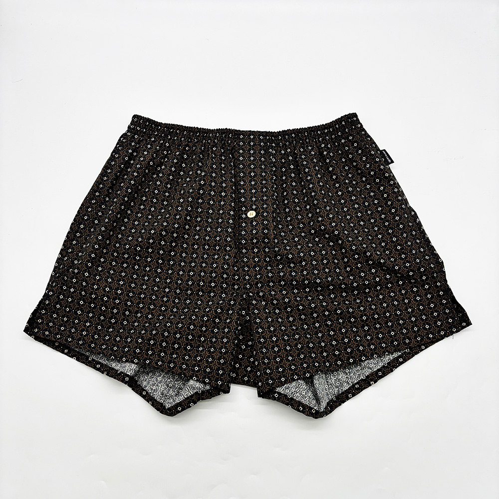シンプルな花格子柄をプリントしたブロード。表面に光沢感があり肌触りもなめらか。ウエストは締め付け感が無い2本ゴム仕様でゆったりとした履き心地です。足口にはスリットを入れ余計な突っ張り感を軽減。