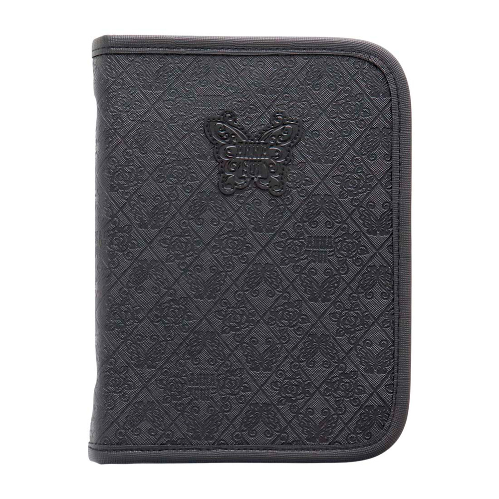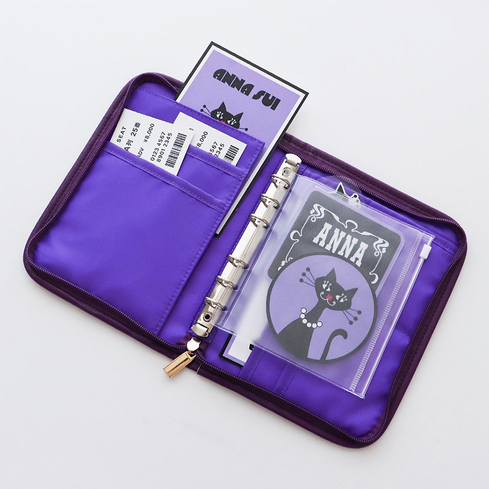 ANNA SUIらしいゴシックなデザインの型押しのマルチケース。エナメルのロゴプレートがワンポイントです。ANNA SUIから、推し活をシックに彩る特別なコレクションです。