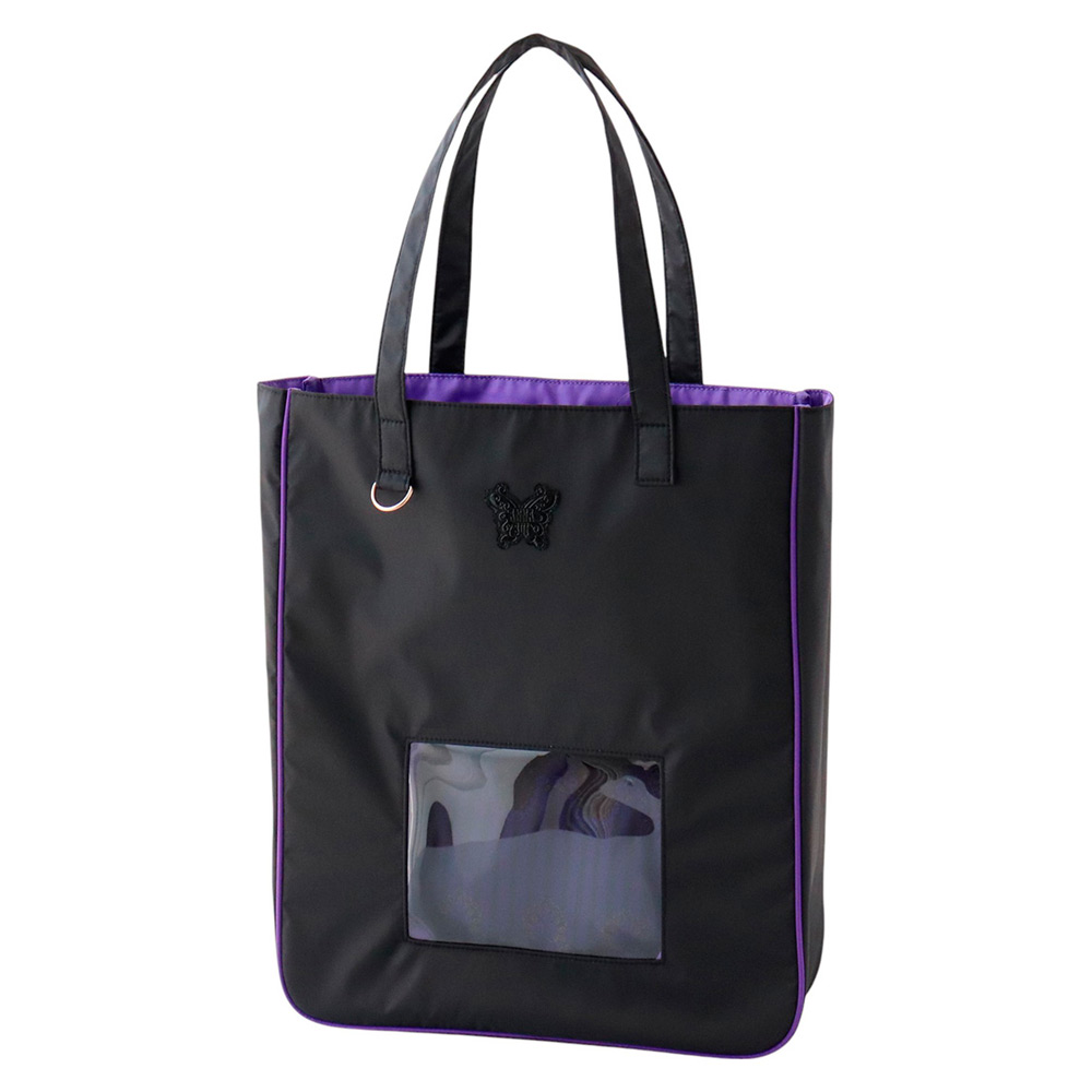 お気に入りのぬいぐるみなどを見せて持ち運びできるトートバッグ。外ポケットにうちわ、内ポケットに書類などを収納でき、傘やペンライトを収納できるポケットも付いています。ストラップホルダー付きなので、キーホルダーなどでカスタマイズも可能。カラーは7色展開です。
