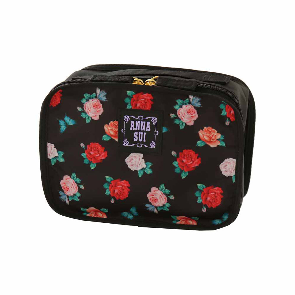 付属のミニポーチやポケットで薬やアクセサリーもスッキリ収納できます。ANNA SUIらしい華やかな裏地のカラーもポイント。
