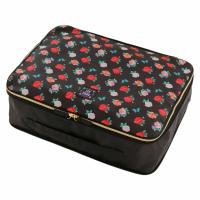 外側についているファスナーを閉じると衣類が圧縮され、コンパクトに持ち運びができます。ANNA SUIらしい華やかな裏地のカラーもポイント。
