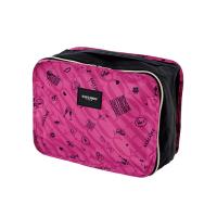 1泊のお出掛けや薄手の衣類を収納するのにちょうど良いサイズの収納ポーチです。裏地のカラ ーまでこだわりのルビーピンクで、滞在中のクローゼット内も華やぐデザインです。入れ替えの際に便利な 持ち手付き。お洗濯もできます。