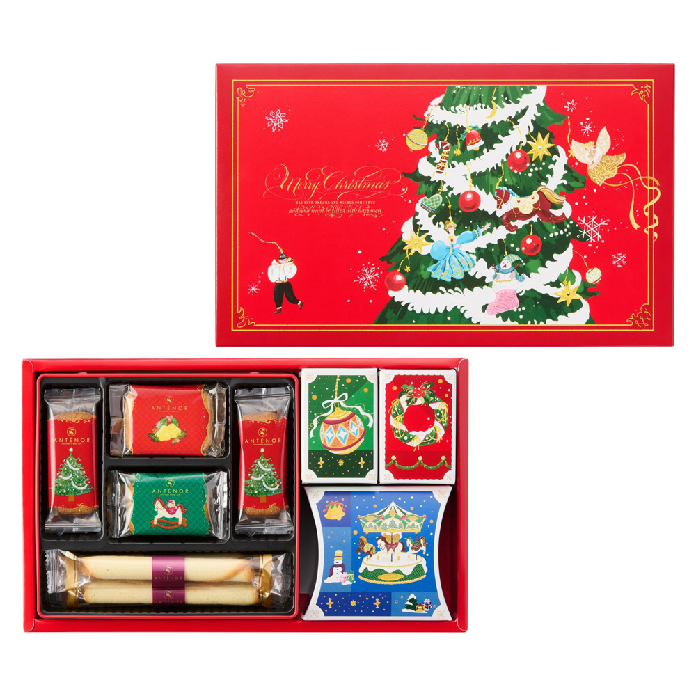 クリスマスクッキーアソート1缶、カカオビスキュイ・オ・ショコラ3個、ルビーフレーズ・ビスキュイ3個、ショコラ・アマンド2個(計27個)