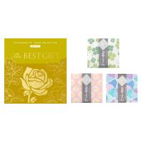 国内外の有名ブランド雑貨、ファッショングッズ、厳選された食材やスイーツなど、多彩なギフトシーンに対応できるカタログギフトに、幸運を呼ぶといわれる「四つ葉のクローバー」や吉祥のシンボル「松竹梅」、「マーガレット」柄の白雪ふきんをセットにしました。「カタログギフトだけでは物足りない…」というお客様にぴったりのセットです。