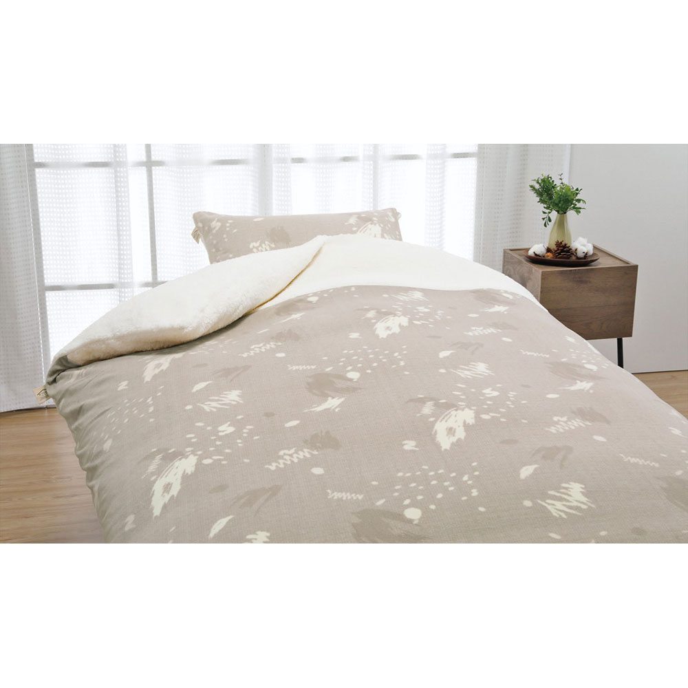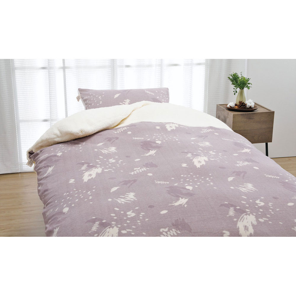 ふんわり、やわらかな肌触りの掛けふとんカバーとピローカバーのセット。吸湿発熱素材のシープボア形状のパイルを使用することで、保温性を実現しています。