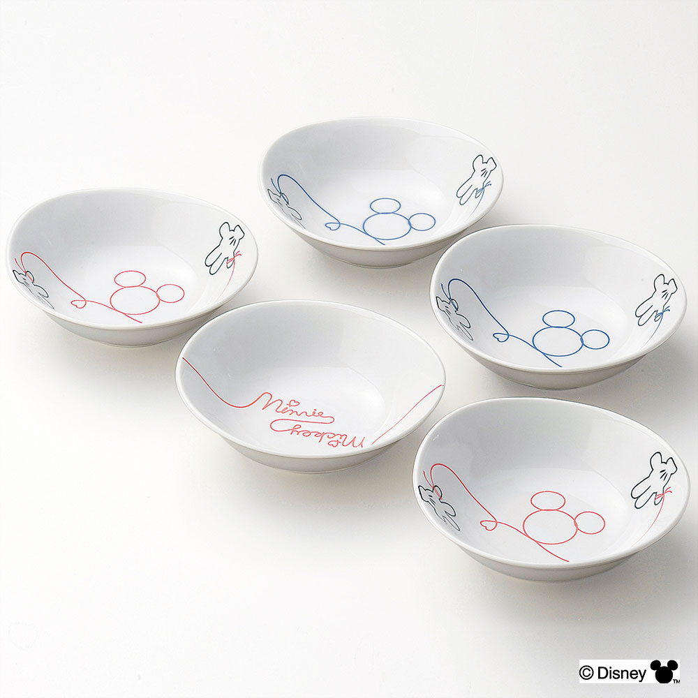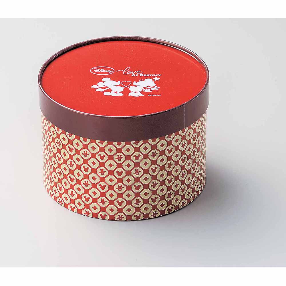 ミッキーと赤い糸の幸せ食器。運命の糸が、ミッキーとミニーの二人の小指をつないでいます。