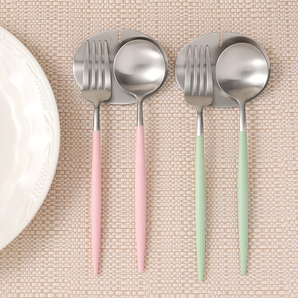 ディナーフォーク×2、ディナースプーン×2、ナイフレスト×2