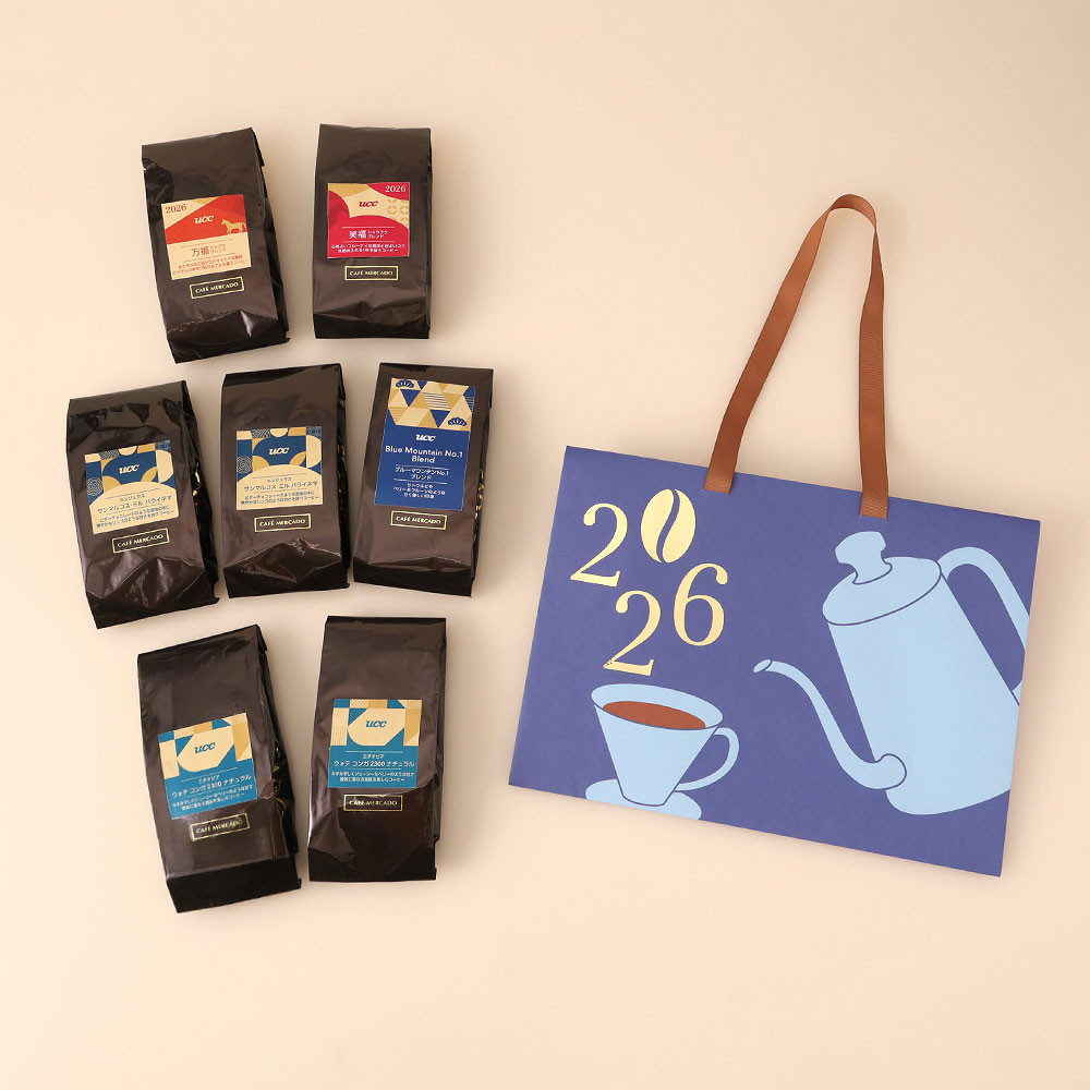 福袋限定ブレンドや福袋限定のスペシャルティコーヒー2種(エチオピア、ホンジュラス)に加えてコーヒーの王様とも言われる優雅な香りと調和のとれた味わいのブルーマウンテンNo.1が入ったセット。全て豆のままでお届けします。