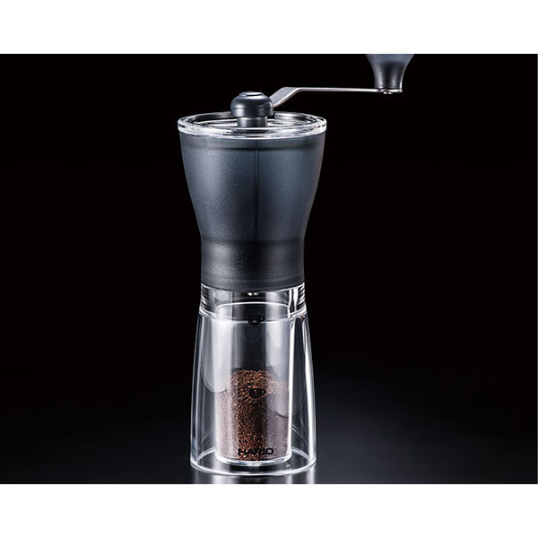 <コーヒーミル>フタ・本体:メタクリル樹脂、ホッパー・ハンドルツマミ・ハンドルキャップ:ポリプロピレン、臼:セラミック、臼座・調整ツマミ:ナイロン、シャフト・スプリング・ハンドル:ステンレス