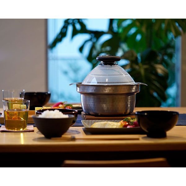 内面フッ素コートでご飯がこびりつきにくい、IH対応のご飯釜のセットです。