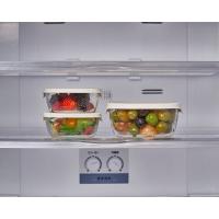 ご飯釜は4層構造+フッ素コートでご飯を美味しく炊き上げます。保存容器は耐熱ガラスなので電子レンジも使用できフタを外せばオーブンにも使える優れもの。ボウルは混ぜやすい深い形状のものです。