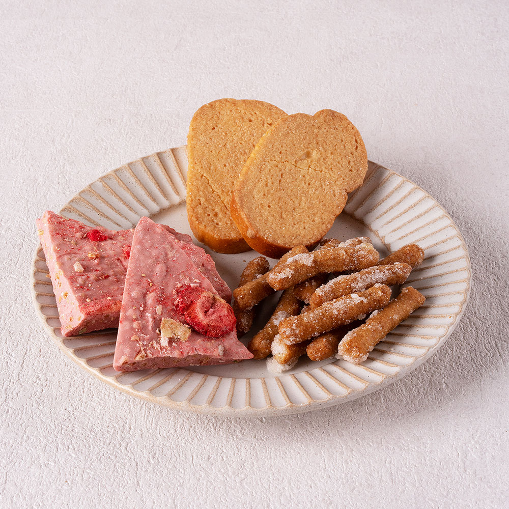 <和楽紅屋>人気の和ラスクや、冬季限定ショコラケーキ、<Feve>の豆スイーツやサブレなどなど7商品をたっぷり詰め合せました。
