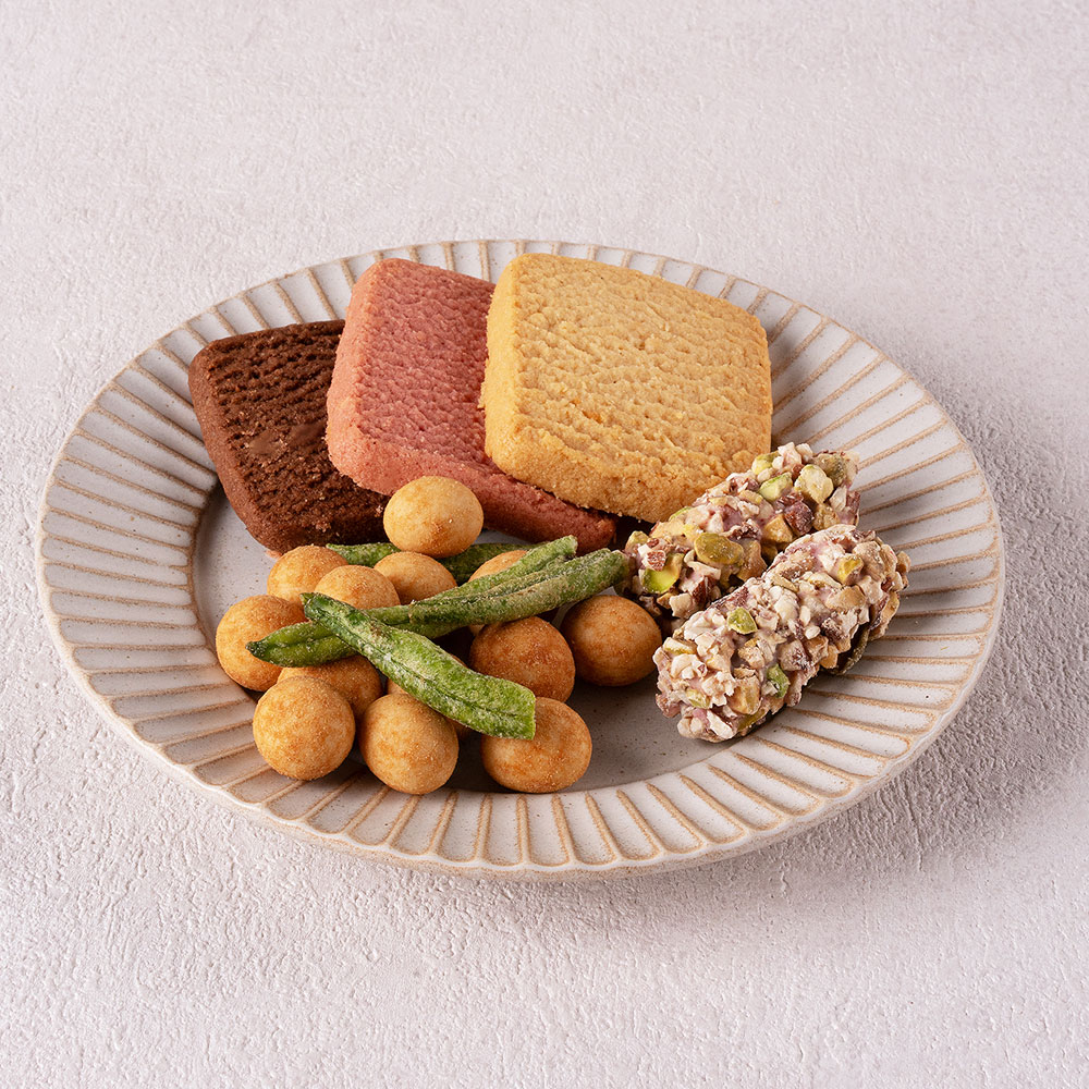 8個(玄米かりんとう×1個、和ラスク10枚入り×1個、ショコラケーキ×2個、割れチョコ苺バナナ×1個、自由が丘サブレ3枚入り×1個、落花生×ホタテ燻製×1個、フルージュ4個入り×1個)
