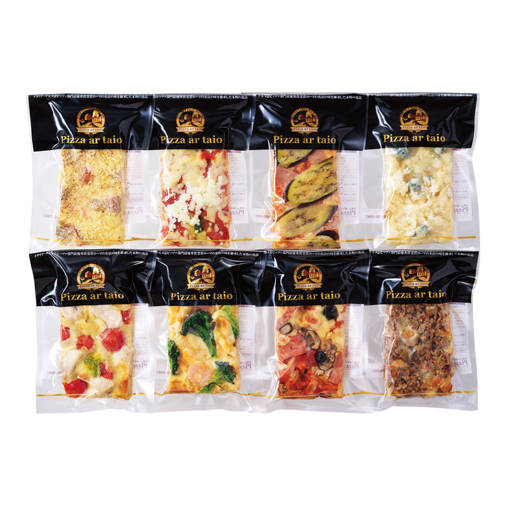 ピッツァ・マルゲリータ、4種のチーズピッツァ、ポルチーニ茸入りピッツァ、ほか5種、計8点(各約14×7cm) お届け時期:12月25日まで(承り期間:12月17日まで)