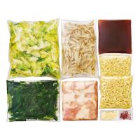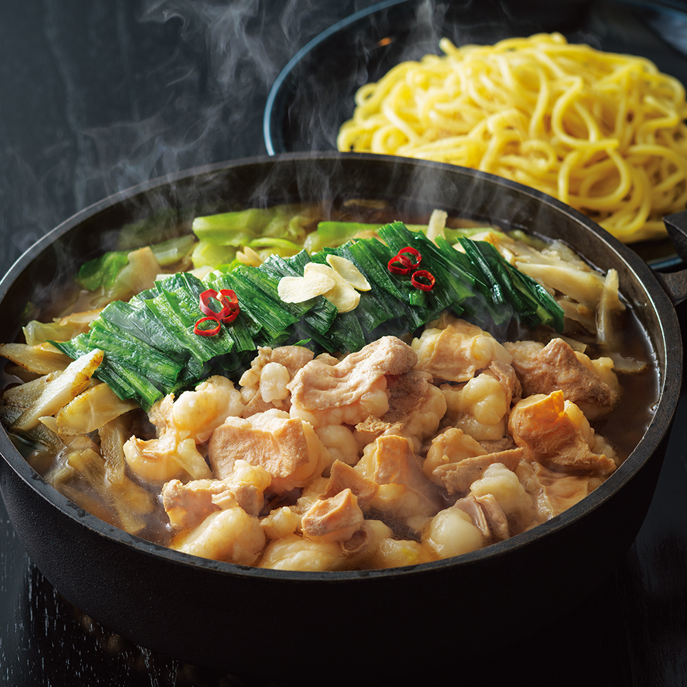 牛もつ400g、スープ(濃縮タイプ)200g、ちゃんぽん麺150g×2、キャベツ500g、ごぼう140g、にら100g、にんにく2.5g、唐がらし0.5g、3~4人前