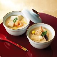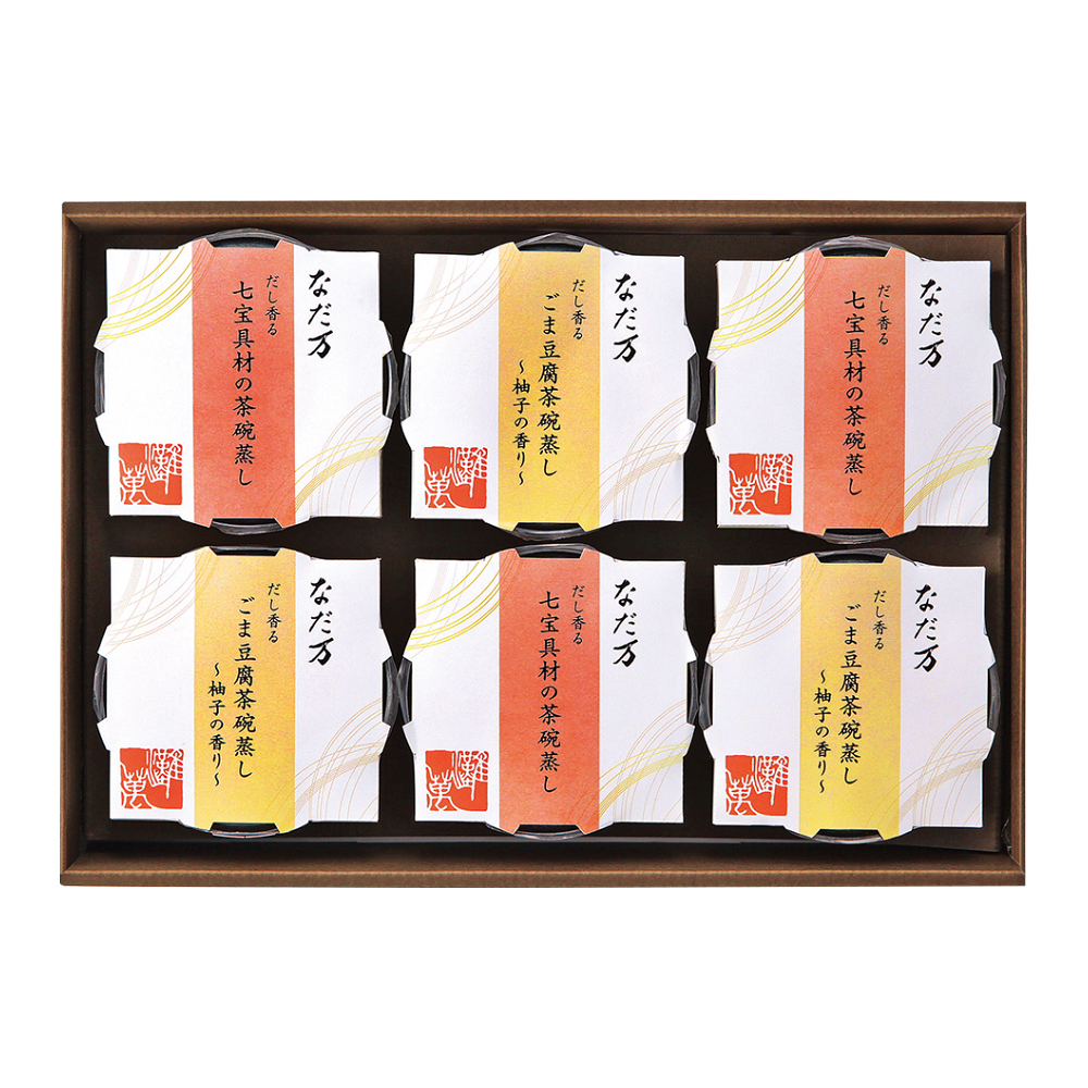 七宝具材の茶碗蒸し・ごま豆腐茶碗蒸し 柚子の香り各150g×3 ※電子レンジ対応※山椒の葉は商品に含まれておりません。お届け時期:11月17日から12月22日(承り期間:12月16日まで)