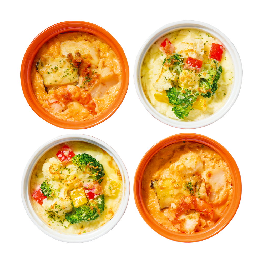 海の幸 車海老とアメリカンソースのライスグラタン160g×2、山の幸 松阪牛とジャガイモのグラタン200g×2※電子レンジ対応 ※配送専用箱にてお届けします。お届け時期:11月15日から