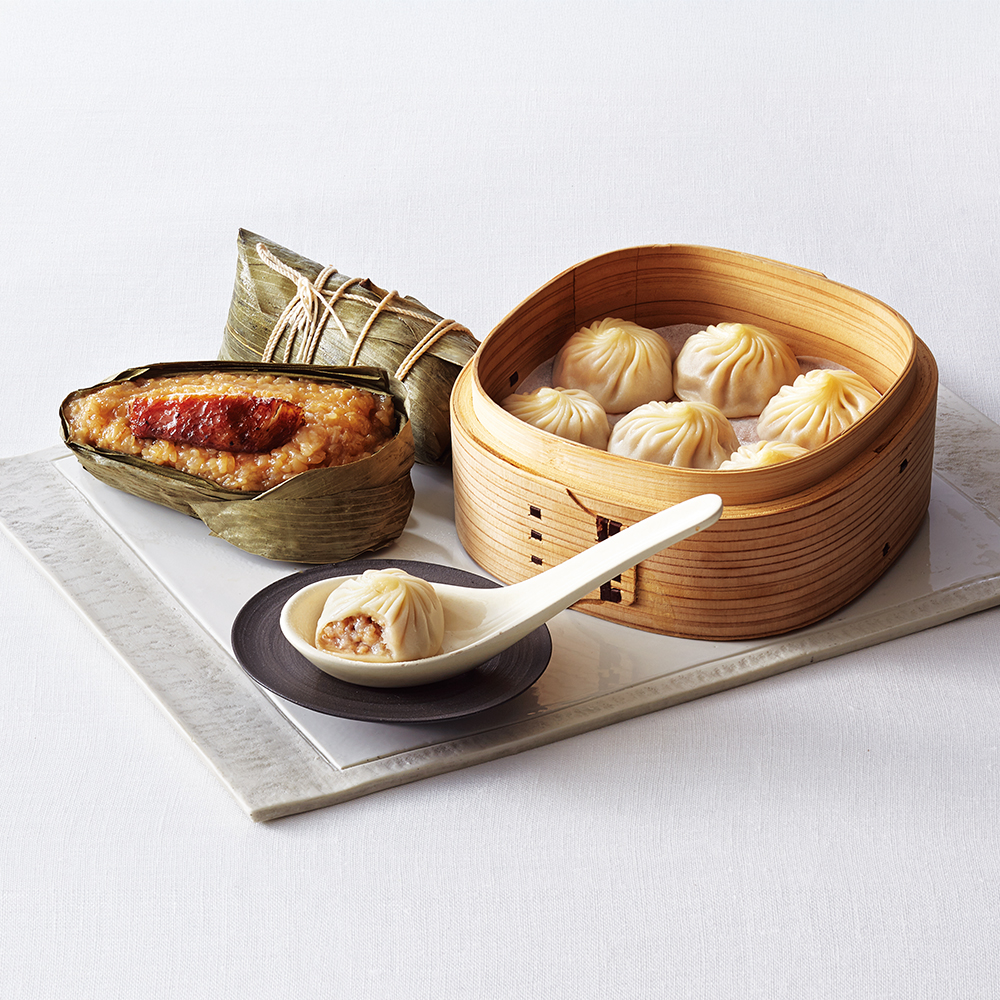 良質な肉質と旨みのある脂が特徴の黒豚を使用し、職人がひとつひとつ手包みした、こだわりの小籠包。えび入り棒春巻きや大根もち、豚肉入りちまきをセットにしました。