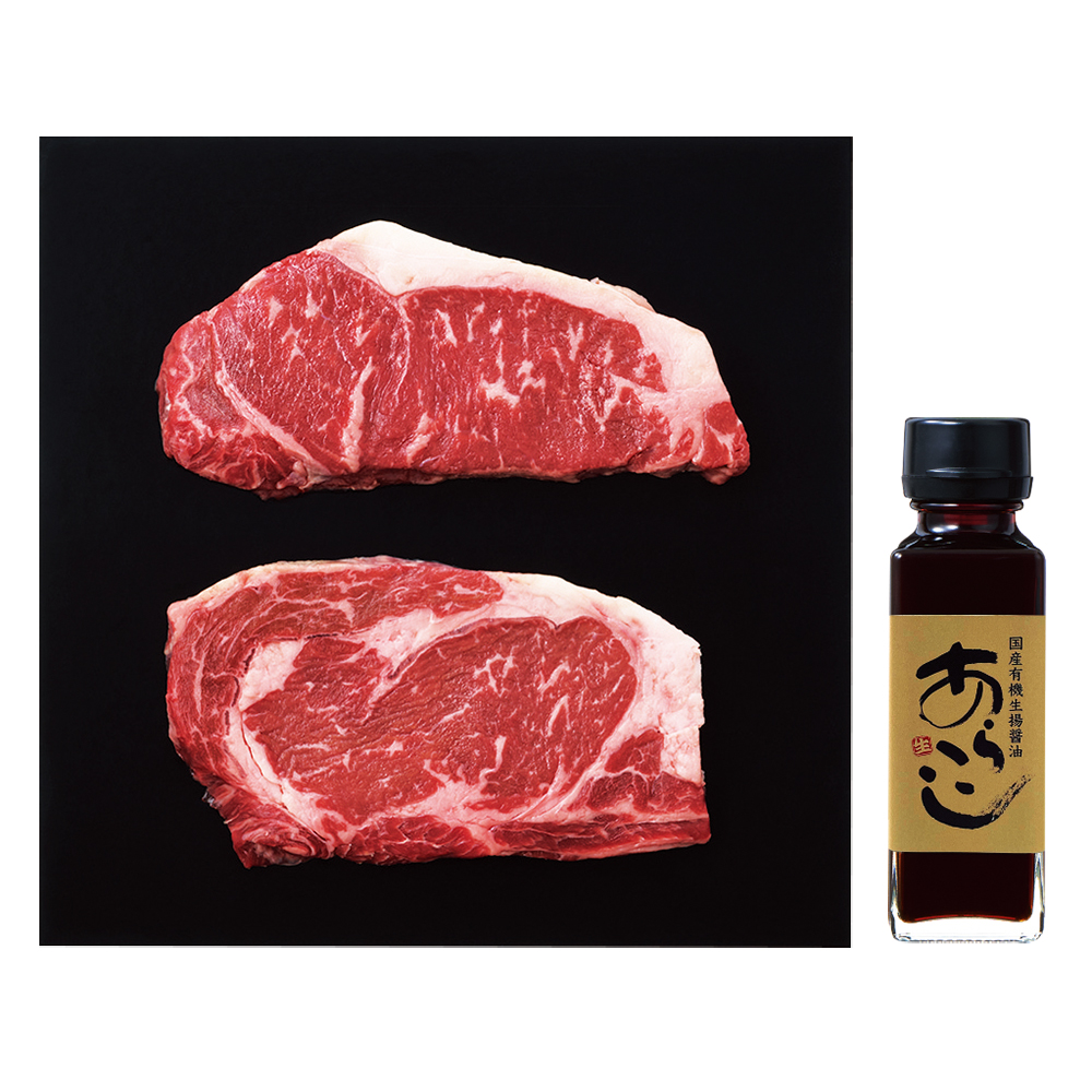 サーロイン200g、リブロース200g、有機醤油100ml 原産地:牛肉(北海道)