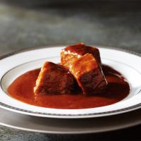 1950年創業の〈赤トンボ〉。食材を吟味し手間を惜しまない、創業者武井明子氏の思いを受け継いだビーフシチュー。GI(地理的表示)登録の「くまもとあか牛」の角切り肉に濃厚なデミグラスソースが絡む、深みのある味わいです。