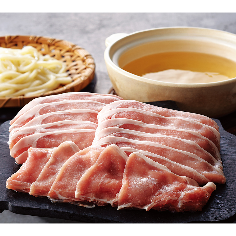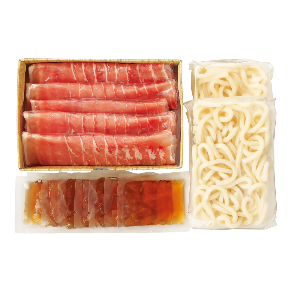 桑水流黒豚ロース500g、七福醸造白だしのタレ20g×8、うどん200g×2 お届け時期:11月10日から