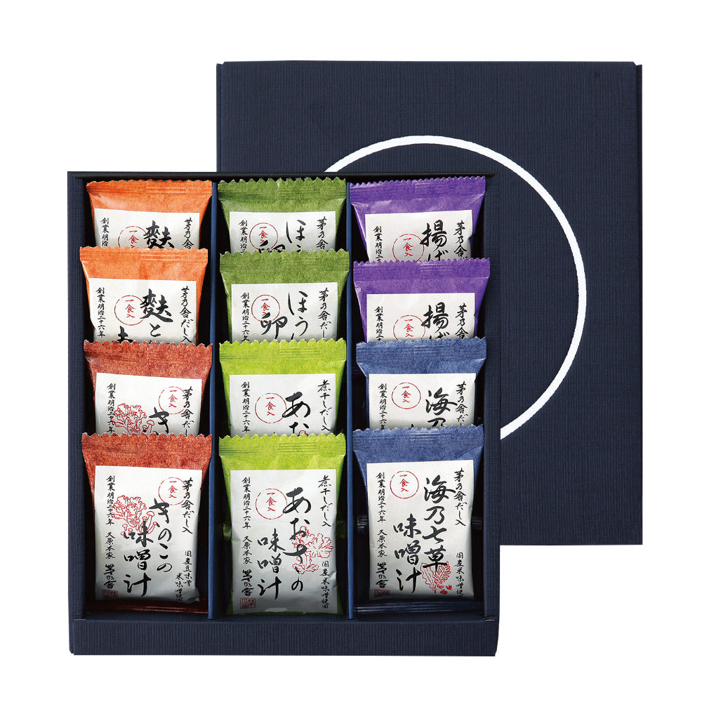 だしと味噌の組み合わせにこだわった本格的な味わいを手軽に楽しめる、フリーズドライ味噌汁6種類12食のセット。