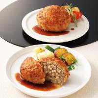 かつおや昆布の旨みで肉汁あふれる和風ハンバーグ。てりやき柚子風味と和風デミグラスのソースで。