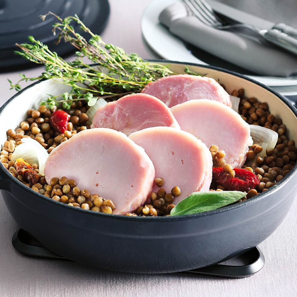 フランス産ロレーヌ岩塩で味付け。ノンスモークタイプのやわらかなハムの詰め合わせです。