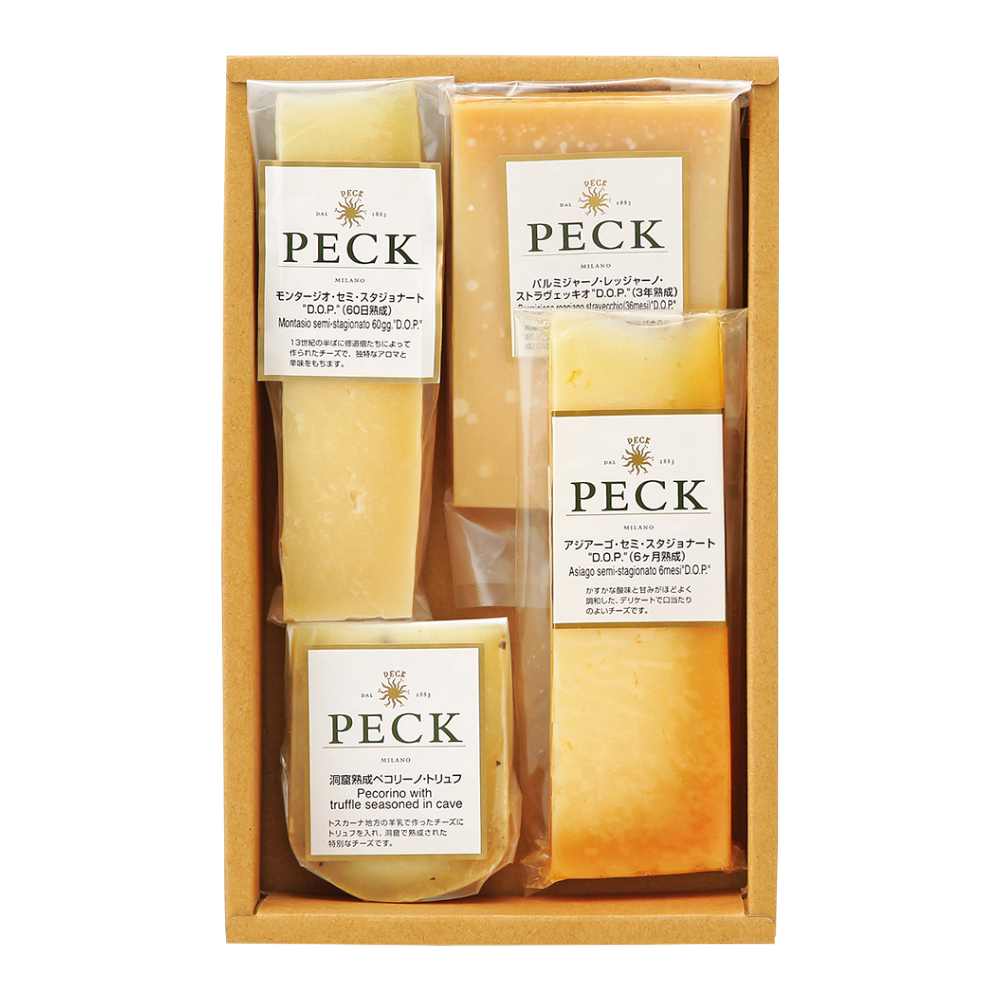 トリュフ入りなど本場イタリアのチーズ4種。高い評価を受けているパルミジャーノ・レッジャーノも入ったセット。