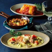 本格的な味わいを簡単調理だけで楽しめるチキンシチュー、ポテトグラタン、ロールキャベツのデリカ3種セット。