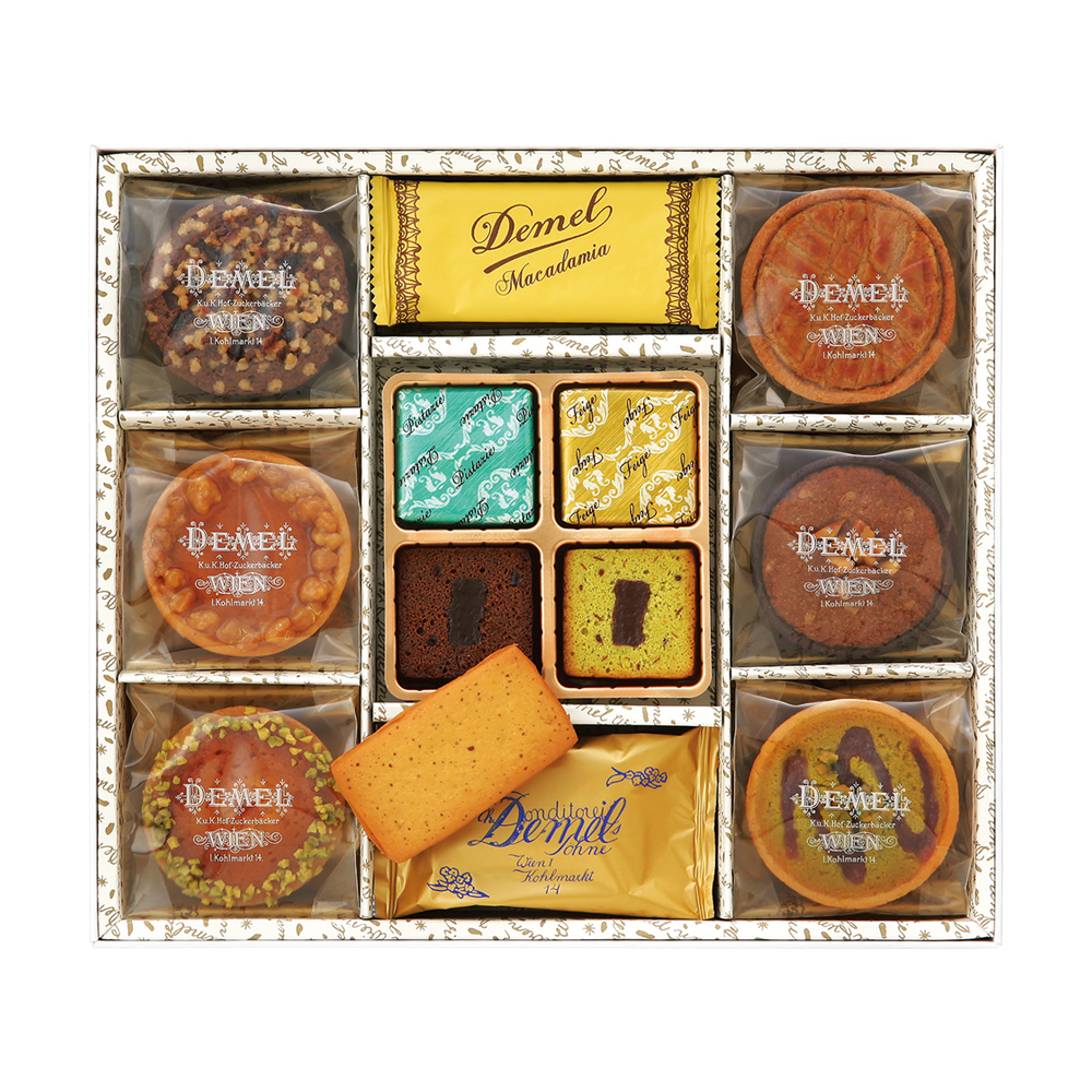 タルト(リンツァー・ブルクシアターリンツァー・ショコラヌス・ピスターチ・ケーゼ・オランジェン)、クライネクーヘン・マカダミアナッツクッキー各4、ケックスサンドウィッチ×2
