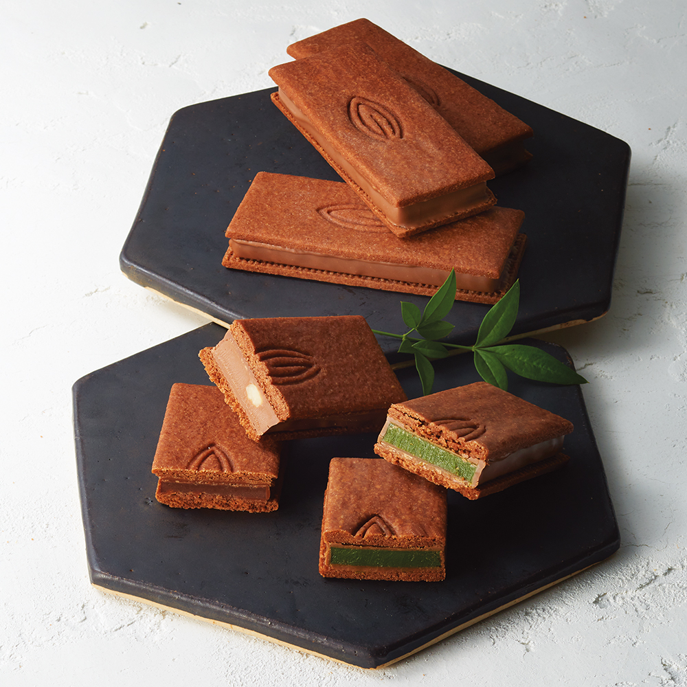 サクッとしたサブレで季節限定の「マダガスカルバニラ」や「マロングラッセ」など8種のガナッシュチョコレートをサンド。