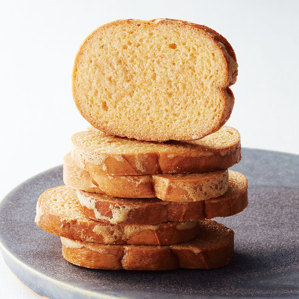 やさしい甘さの和三盆糖、北海道産発酵バターなど、素材にこだわった上品な味の「和」のラスクです。