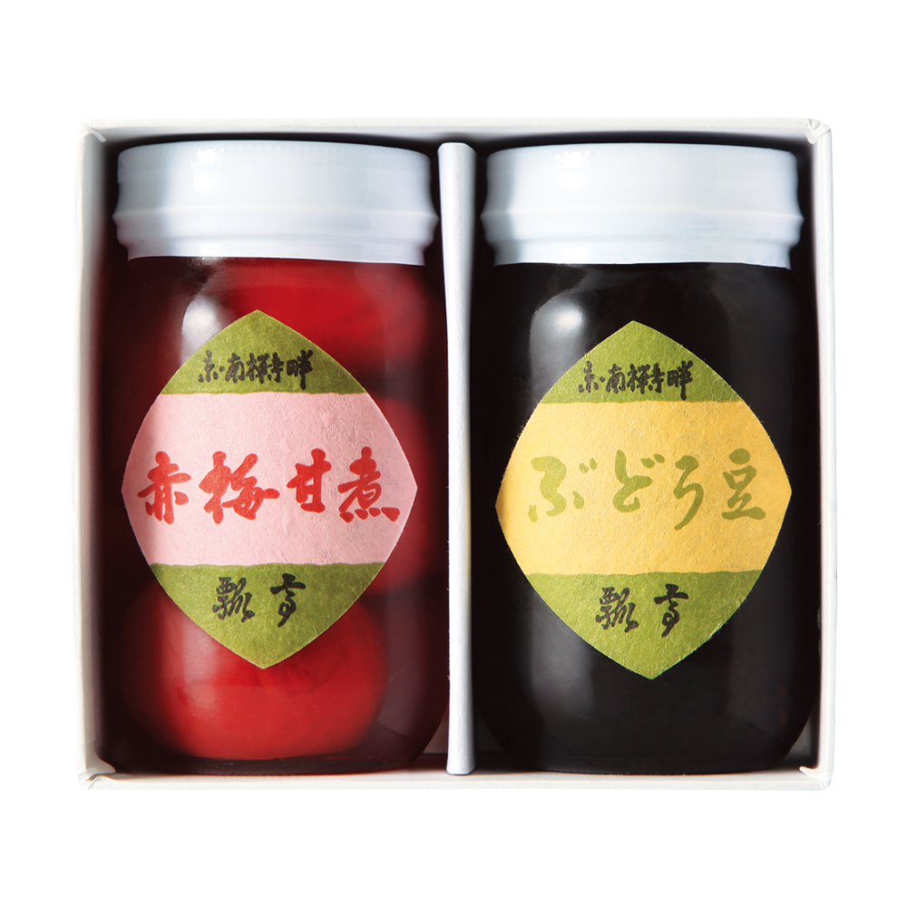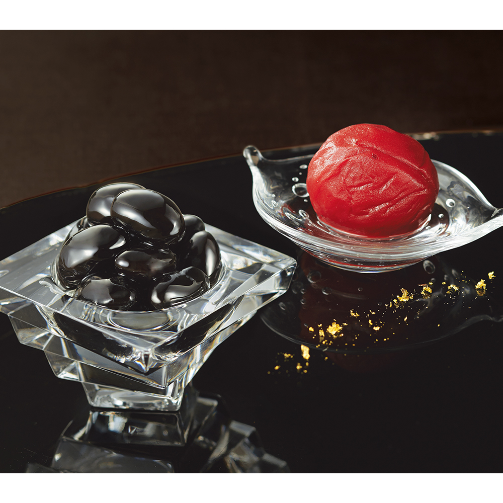 瓢亭の技で丁寧に炊きあげた、丹波の大粒黒豆と梅甘煮。瓢亭が作る2種の詰め合わせ。