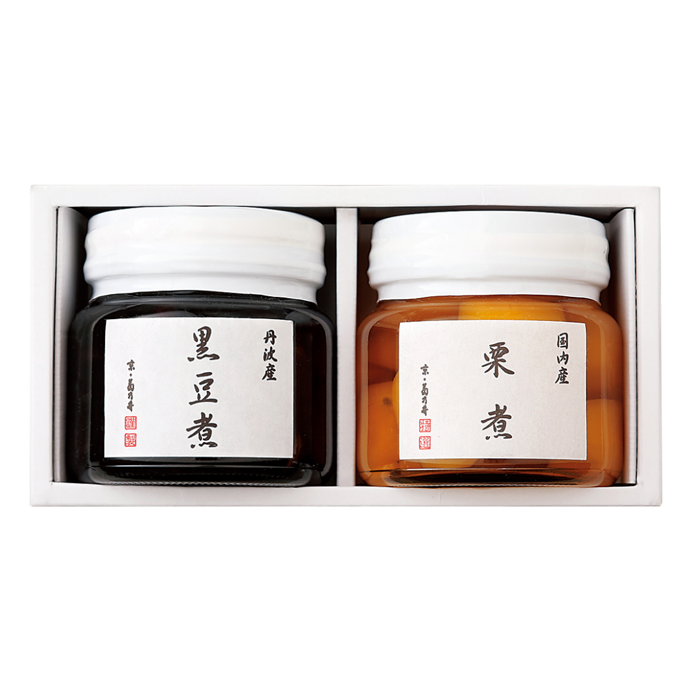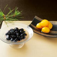 甘さを抑えて上品な味に仕上げた丹波産黒豆煮と、国産の栗をやわらかく煮上げた栗煮の詰め合わせ。