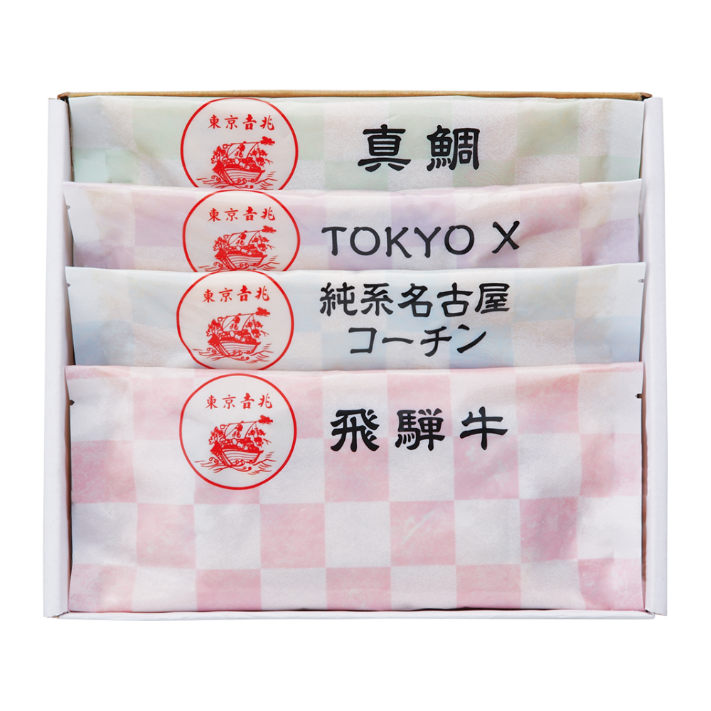 飛騨牛、TOKYO Xなどの銘柄肉や真鯛を東京吉兆調整の西京みそに漬け込んだ4種詰め合わせ。