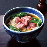 合鴨肉と青ねぎ、山椒の風味が、京風細うどんと絶妙に絡み合います。