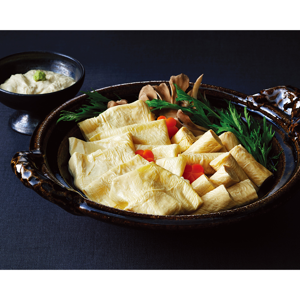 創業以来220余年、京ゆば一筋の老舗。昔ながらの製法による、まろやかで滋味豊かな生ゆばです。
