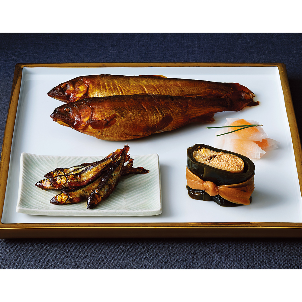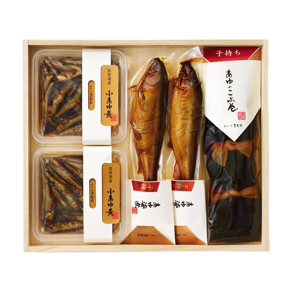 小あゆ煮80g・子持ちあゆの姿煮1尾各2、子持ちあゆのこぶ巻