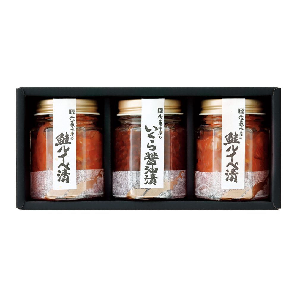 北海道産の鮭といくらを、鮭の魚醤を隠し味にした醤油だれに漬け込みました。