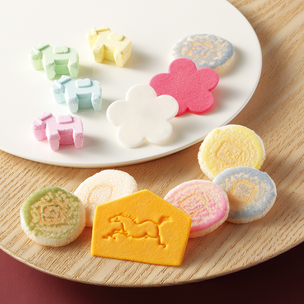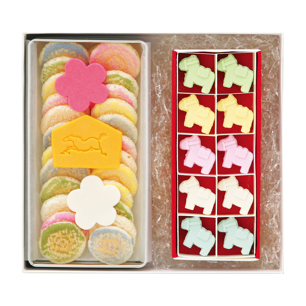 京ふうせん(干菓子入り)(28枚)、打物:干支(福午)10個 お届け時期:12月3日から