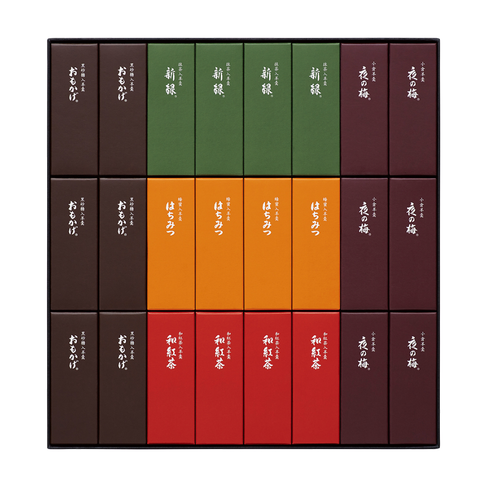 小形羊羹各50g:夜の梅・おもかげ各6、新緑・はちみつ・和紅茶各4
